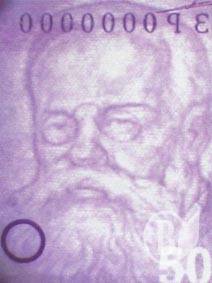 1. Водяной знак. Это изображение в разных тонах портрета, образованное внутренней структурой бумаги. Оно заметно во время рассматривания банкнот против света и полностью повторяет портрет, напечатанный на лицевой стороне купюры.