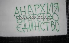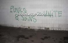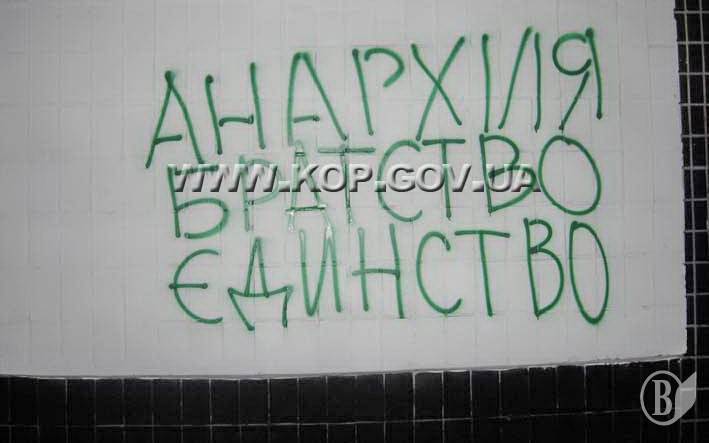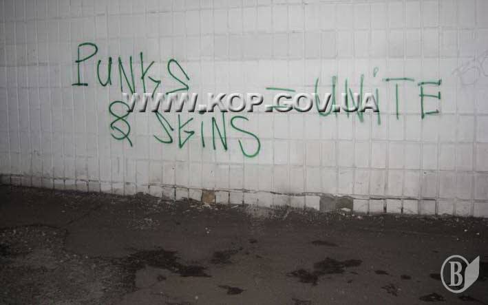 Непосредственно же на месте события, куда выехала следственно-оперативная группа Черниговского городского отдела, на стене дома стражи порядка зафиксировали надписи зеленой краской: «Анархия. Братство. Единство», «FASHISM-ZOMBIE", "PUNKS Scins=unite", которые сделали задержанные.