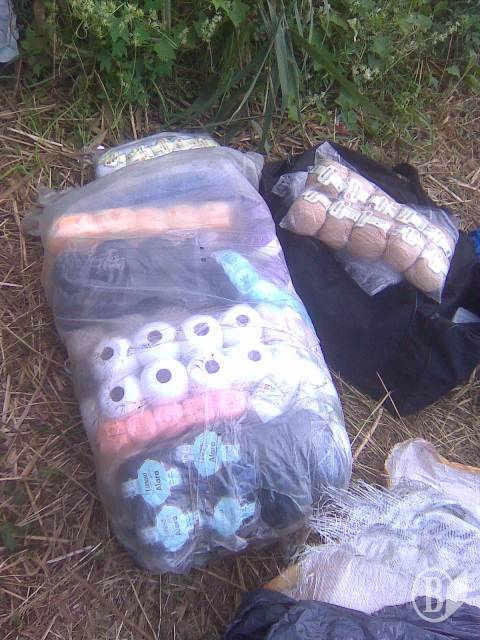 Протягом ще однієї години на березі річки Снов, в 50 м від державного кордону та 2300 м від села Єліне Щорського району, було виявлено 5 великих сумок та поліетиленовий пакет з товарами народного вжитку (трикотажні вироби) розкиданих в хаотичному порядку.