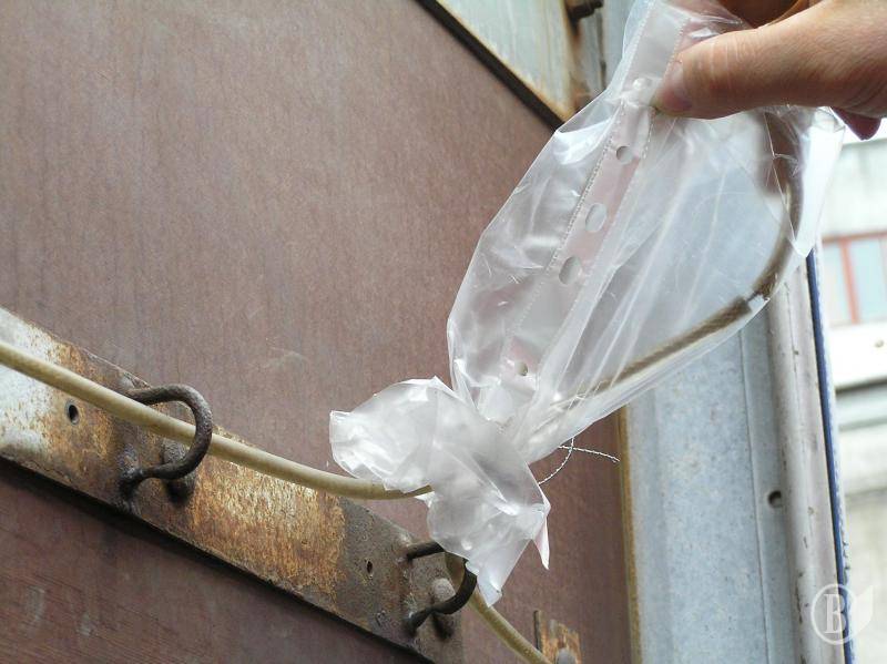 Коли завантаження закінчили, за допомогою спеціального засобу (зробивши імітацію цілісності троса) на машини були встановлені та скріплені розрізанні раніше троси з митним забезпеченням.