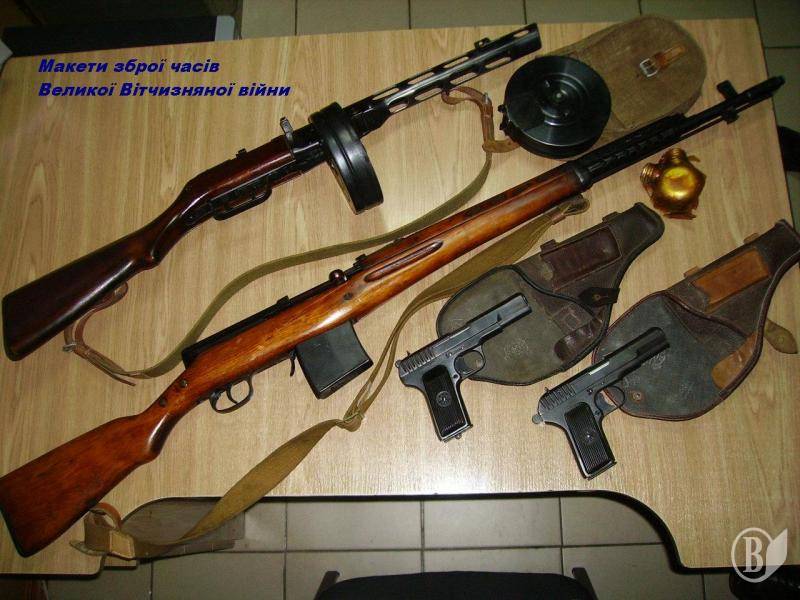У багажному відділенні його автомобіля знаходились макети 2-х пістолетів системи Токарєва, самозарядної гвинтівки Токарєва, пістолета – кулемета Шпагіна, масльонки та магазина для патронів до пістолета – кулемета Шпагіна у брезентовому підсумку.