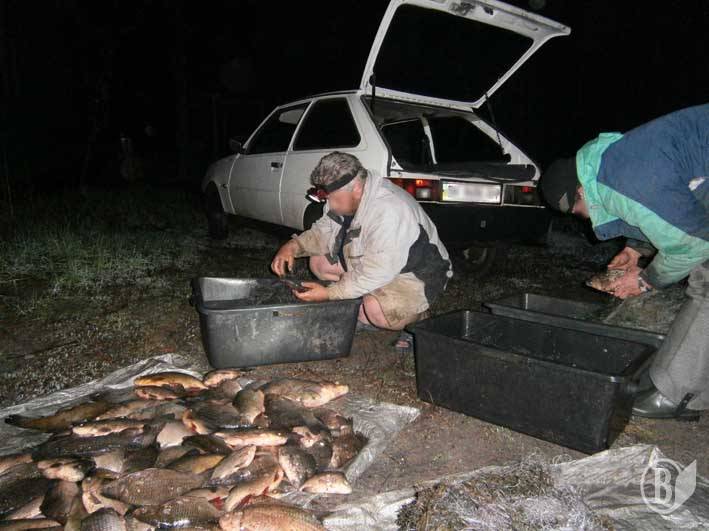 І ось близько 22 години один з постів побачив в лісі легковика, зловмисники прибули на свою базу. Було вирішено дати браконьєрам можливість підняти сітки, зібрати вилов, а потім вже брати групу «на гарячому» із знаряддями злочину та рибою.