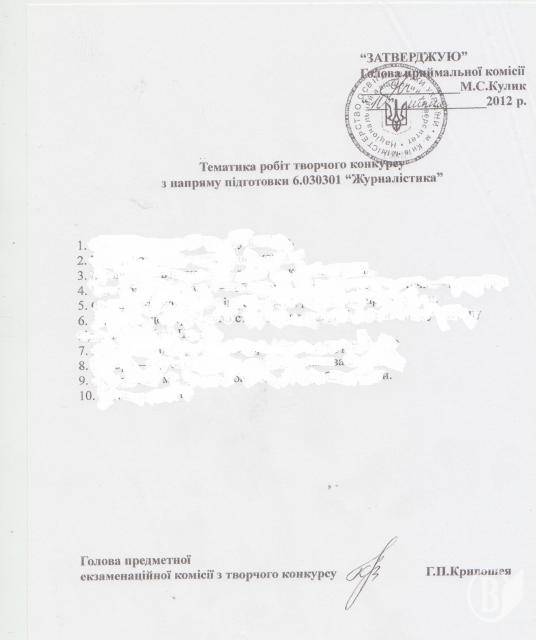 Чоловік представився як ректор ВУЗу, і сказав, що все з моїми документами гаразд, що все відмічено. Ще сказав, що мені немає сенсу їхати до Києва, адже бюджет мені не світить. Після розмови я змирилася з тим, що не поступлю туди, набридло усюди боротися і зубами виривати. Але мамі терміново потрібно було їхати до Києва і вона все-таки зайшла до ВУЗу.