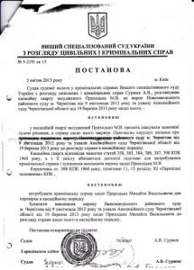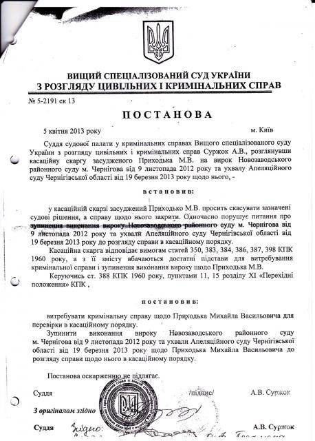 Наступний документ, який я пропоную до уваги — ухвала Новозаводського райсуду міста Чернігова, за якою заарештований за спробу втечі злочинець був звільнений з-під варти.