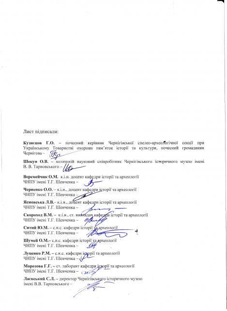 Автори цього листа упродовж багатьох років тісно співпрацюють з В.В. Мултанен у справі збереження та дослідження пам’яток Чернігівщини і завжди високо оцінювали її професіоналізм, принциповість і порядність.