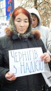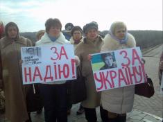 Чернігівці тримали у руках плакати «Надіє, ми з тобою», «За мир», «За Надію», «За Україну».