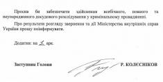 У листі Руслан Колєсніков зазначає про існування численних свідків цього нападу та наполягає на забезпеченні неупередженого та всебічного досудового розслідування справи.