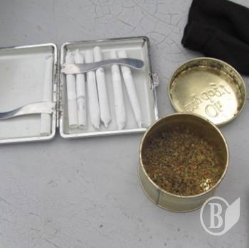 В особистих речах, а саме в портсигарі, пес виявив 7 цигарок та ще у косметичці, в металевій ємності, знаходилась речовина рослинного походження, попередньо – марихуана загальною вагою 6 грамів.