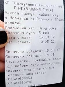 Однак пані наполегливо скористалася банкоматом на ту саму п’ятірочку й отримала чек із зазначенням оплаченого терміну парковки не 30, а 50 хвилин.