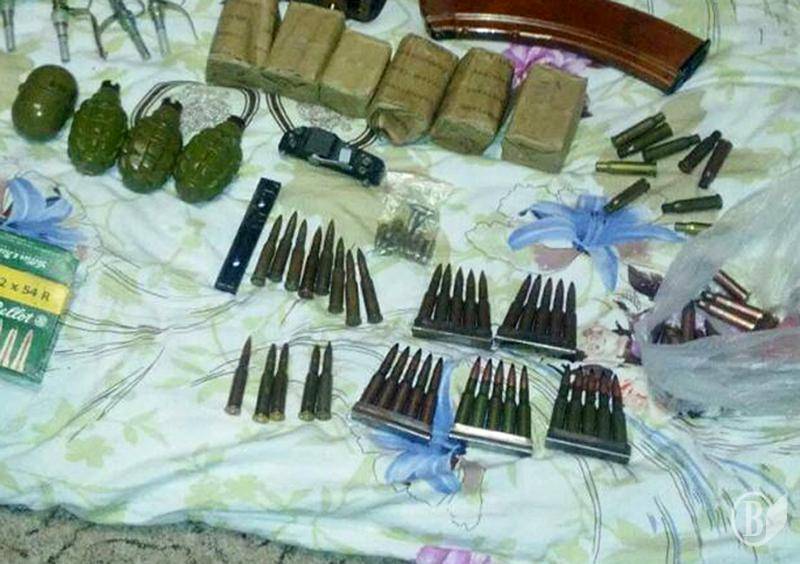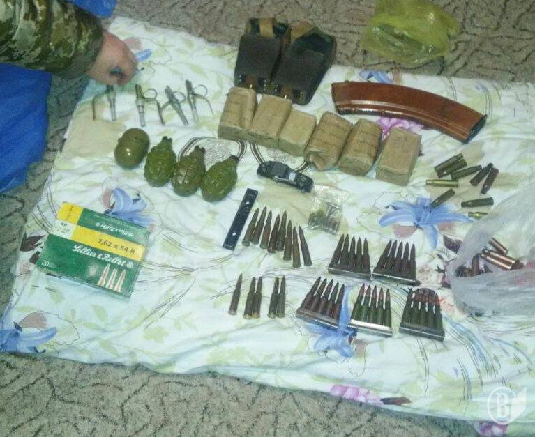Під час обшуку помешкання зловмисника вилучено чотири гранати РГД-5 та Ф-1 із запалами, півсотні набоїв калібру 7,62 мм, патрони до вогнепальної зброї різного калібру та споряджений магазин до ручного кулемета Калашникова.