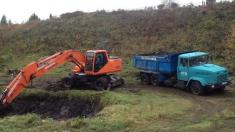 Хвилин через 30 після розмови з сільським головою я виїхав перевірити, що ж там коїться і чи зупинилися роботи. Приїхавши на місце, помітив працюючий екскаватор та вантажний автомобіль і кілька легкових припаркованих поряд. Одна людина керувала роботою, інша возилася з помпою для відкачування води.