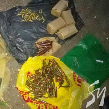 Під час проведення санкціонованих слідчих дій зі схрону, облаштованого неподалік лісосмуги, було вилучено велику кількість боєприпасів та набоїв різного калібру.
