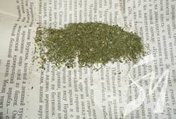 У гаманці виявлено поліетиленовий згорток з речовиною сіро-зеленого кольору рослинного походження, попередньо марихуаною, вагою близько 3 грамів.