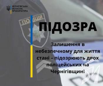 За процесуального керівництва Чернігівської обласної прокуратури двом співробітникам управління патрульної поліції в Чернігівській області повідомлено про підозру у завідомому залишенні без допомоги особи, яка перебуває в небезпечному для життя стані, що спричинило її смерть (ч. 3 ст. 135 КК України).