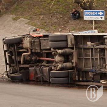 Грузовик со стеклом перевернулся в Чернигове