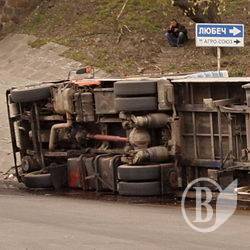 Грузовик со стеклом перевернулся в Чернигове