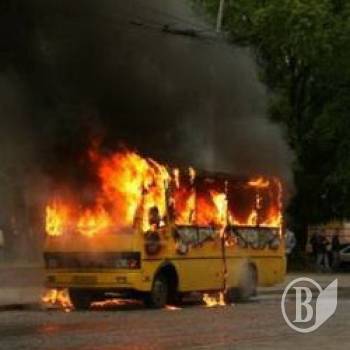 Сегодня во Львове на Привокзальной около церкви Ольги и Елизаветы сгорело маршрутное такси – автобус «Эталон».
