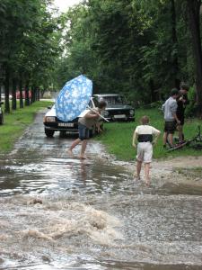 Будь-який більш-менш серйозний дощ перетворює так званий "малий проспект" (ділянка проспекту Перемоги між міською стоматологічною поліклінікою і Площею героїв Сталінграду в обласному центрі) у невелике озеро.