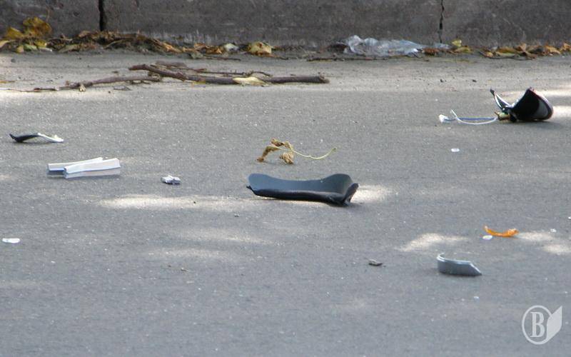 Автомобіль рухався по вул. Горького в сторону проспекту Перемоги. Висновки про його швидкість руху зроблять спеціалісти за довжиною гальмівного шляху. Сліди шин тягнуться більш ніж на 15 метрів.