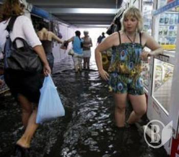 Сильный ливень, который длился около 20 минут, частично парализовал в четверг вечером работу станции метро"Позняки"в Киеве.