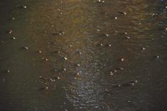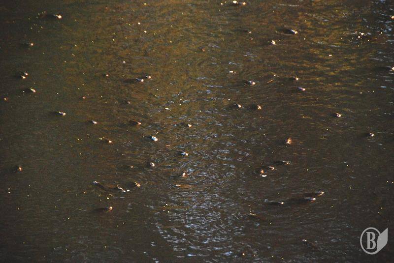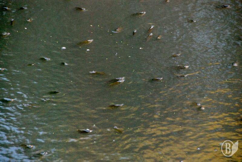 В районе стриженских ям (это почти у самой дамбы), во всяком случае, по состоянию на 20.30 мин 3 июля 2010 года, скопилось множество рыбы, поскольку уровень реки значительно снизился вследствие планового спуска воды. На дворе жара, то есть уровень кислорода в воде и без того невысок. С уменьшением объема воды в реке его (кислорода) явно не становится больше. Проще говоря, рыба задыхается: с берега (ближе не подойдешь, везде минимум полуметровый слой ила) отлично видно, как она хватает ртом воздух. При этом косяки стоят плотно друг к другу. Все оставшееся водное зеркало "ощерилось" жадно хватающими воздух рыбьими головами. Зрелище, честно скажу, не для слабонервных.