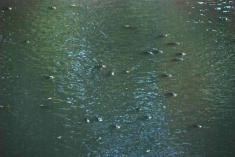 ...Народу на берегу много. Одни наблюдают процесс, другие, не теряя времени даром, черпают рыбку подсаками с длинными ручками. Есть пару предприимчивых парней на резиновых лодках. На берегу в лесу видела несколько мотоциклов и скутеров. Тут и там слышатся недоуменные вопросы, почему сейчас, когда для этого не требуется много усилий, не организовать централизованный сбор рыбы и ее перемещение в Десну?