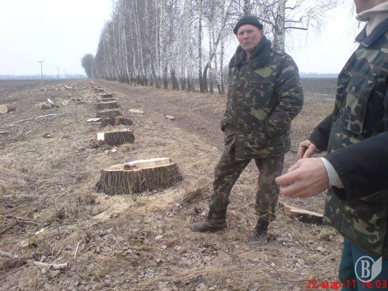 Перевіркою встановлено, що на території Горбівської сільської ради за межами населеного пункту в захисній лісосмузі вздовж ґрунтової дороги Р-67 Горбове, ФОП Кадала Р.А. самовільно здійснив заготівлю деревини шляхом суцільної рубки ряду дерев тополі в кількості 212 шт. (з них ростучих 201 шт. та 11 шт. сухі), сосни сухостійної – 10 шт., берези – 10 шт.(ростучої – 5 шт., сухостійної – 5 шт.). Крім того, пошкоджено до ступеня припинення росту 2 дерева берези (вивернуто з корінням - 1 шт. та зламаний стовбур – 1 шт.), та 1 дерево сосни пошкоджене до ступеня неприпинення росту.