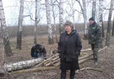 На фото: Держінспектор з ОНПС разом з депутатом сільської ради та сільським головою Горбівської сільської ради під час обстеження місця знесення зелених насаджень.