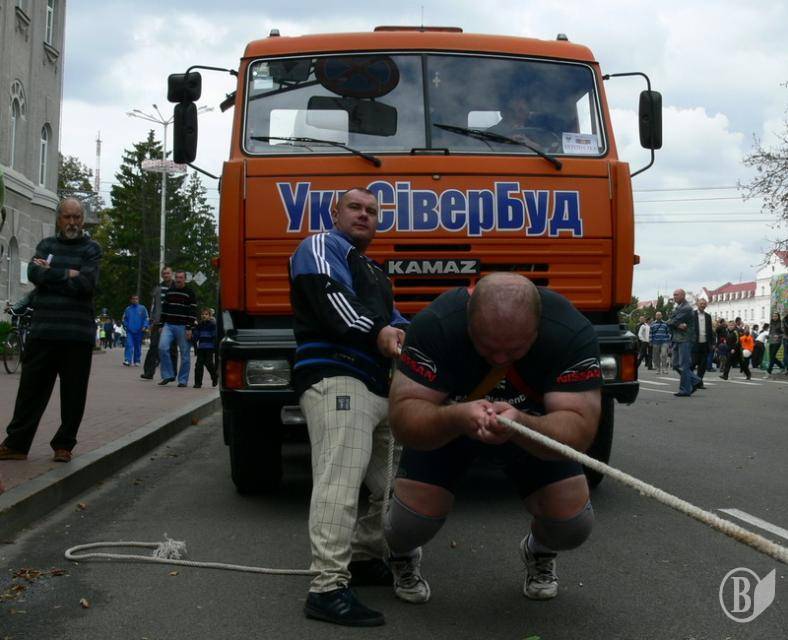 Силач посунув КАМАЗ на 25 метрів. І повторив на біс міському голові. ФОТО, ВІДЕОрепортаж