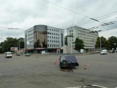 Працівник міліції, який оформлював ДТП, зазначив не на камеру, що з моменту будівництва скляних конструкції підземного торгівельного центру «Акваріум», кількість ДТП на цьому перехресті зросла, а водії перестали бачити одне одного.