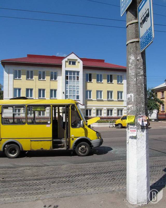Пригода сталася відразу за зупинкою громадського транспорту біля Театру ляльок, навпроти адмінбудівлі Чернігівських електромереж. Маршрутне таксі 33-го маршруту (держномер СВ2564АІ) ударило легковик (держномер СВ1849АР) ззаду, зім'явши задні двері і розбивши скло.