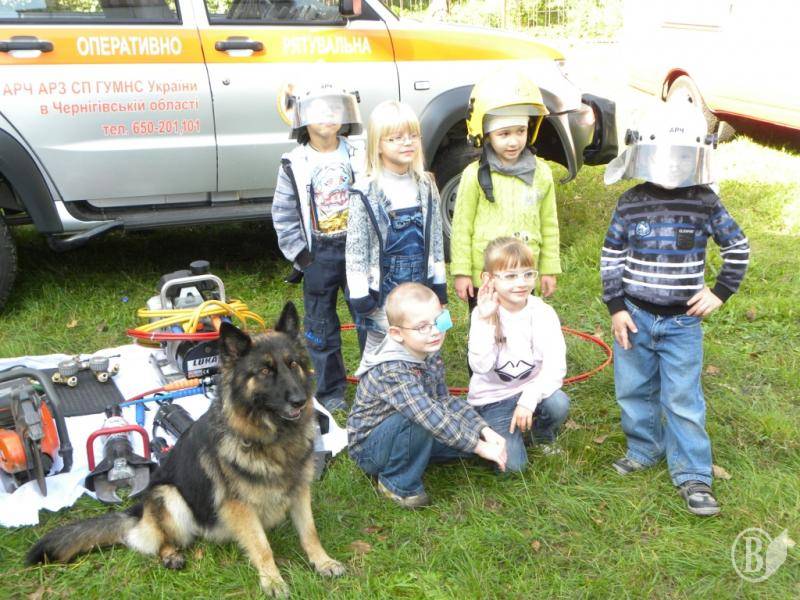 Напередодні свята - Дня рятівника, у Чернігові на базі обласного Палацу дітей та юнацтва Територіальне управління МНС і навчально-методичний центр цивільного захисту та безпеки життєдіяльності спільно з кінологічною службою УМВС і Товариством Червоного Хреста провели для школярів пізнавально-профілактичну акцію під гаслом "Запобігти. Врятувати. Допомогти.".
