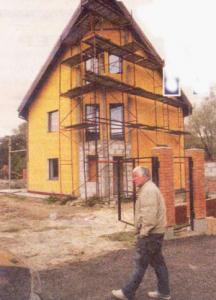 Перекриття в будинку майбутнього дерев'яне, з клеєного бруса. По дереву покладений пінопласт. На нього залито шість сантиметрів бетону, а поверх постелена дерев'яна підлога. Конструкція не стикається зі стінами і на нижньому поверсі кроки майже не чутні. Спеціальні, з підвищеним тепловим опором вікна і двері робила фірма Козубова - вийшли не гірше, ніж у західних фірм. Склопакети з дуже широкою рамкою, склом із тепловідбивним покриттям і заповненні інертним газом, їх виготовила одна з чернігівських фірм.