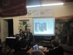 Віталій Огієнко, старший науковий співробітник Українського інституту національної пам’яті, кандидат історичних наук, розповів про меморіальну топографію Голодомору в Україні на основі аналізу візуальних репрезентацій пам’ятників. Дослідник підкреслив, що Голодомор був одним із тих глобальних травматичних фактів в нашій історії, який закарбувався в пам’яті народу. Він наочно показав особливості відображення цієї трагедії в пам’ятниках і пам’ятних знаках в різних регіонах та областях країни. Вшанування жертв голодової катастрофи в монументальному мистецтві представлено різноманітними хрестами (стародавнє позначення Вічного Дерева Життя, стародавній знак (символ) життя, істини і спасіння, взятий стародавніми християнами (людьми хреста, людьми життя), зображеннями жінки (часто з дитиною), меморіальними дошками тощо. До речі, учасники круглого столу звернули увагу, що пам’ятні хрести Чернігівщини є найбільшими в Україні.