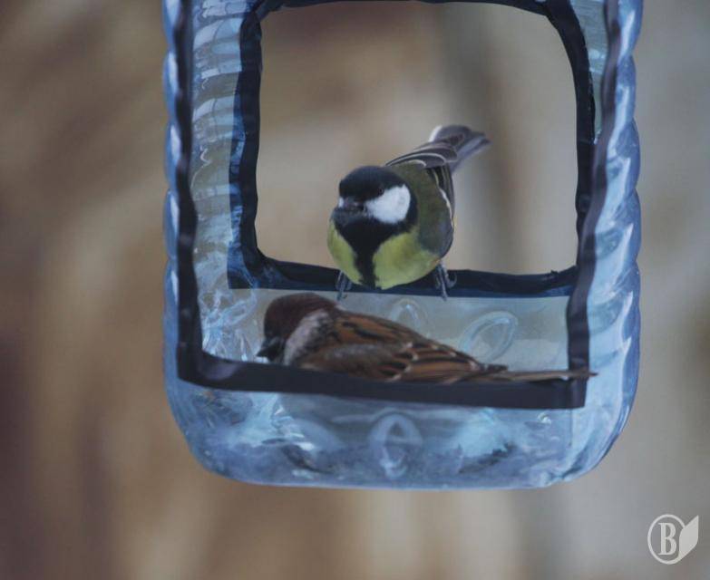Годівниця, знайдена і зроблена за 20 хвилин, служитиме до весни. Один із її недоліків у тому, що вона має велику парусність і сильно гойдається на вітрі. Це має і плюс – не дає довго засиджуватися безцеремонним горобцям, які люблять умощуватися в насіння і одноосібно їсти.