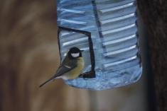 А ось синиця звичайна і горобці не соромилися. Мороз і вітер змушували їх не витрачати енергії на безрезультатний пошук їжі.