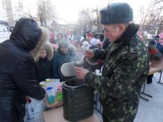 Потім всіх запросили до польової кухні, скоштувати солдатської каші з котлетою та гарячого чаю.