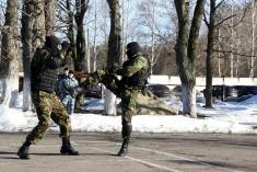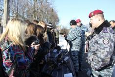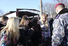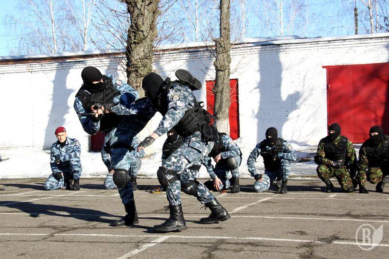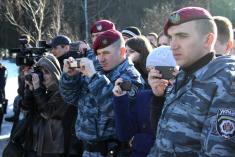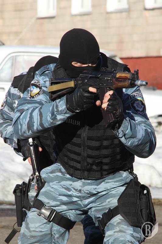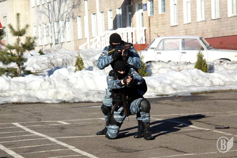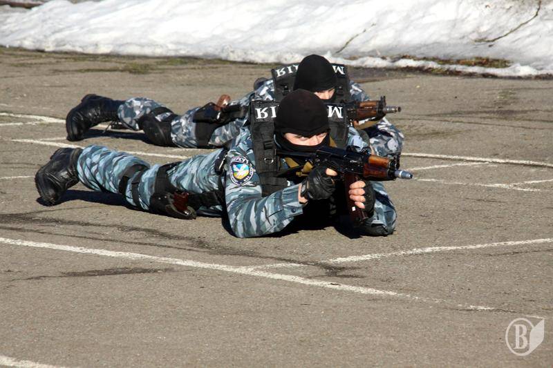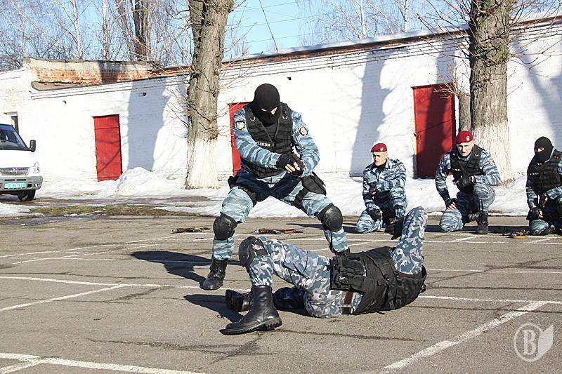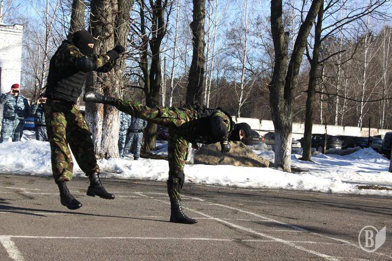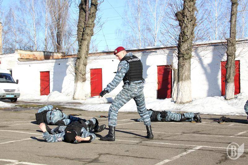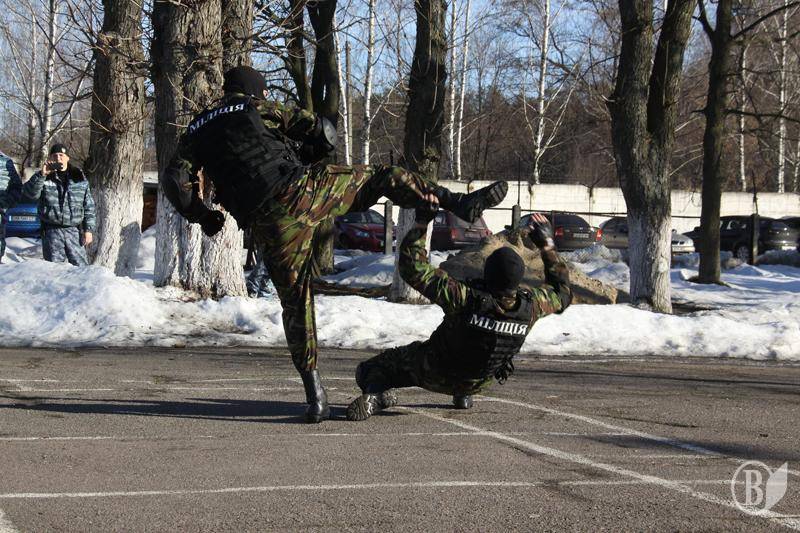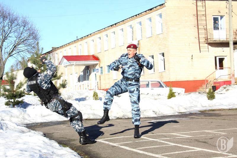 На плацу чернігівського навчального центру школярі побачили виставу, як ці треновані міліціонери можуть виконувати спеціальні завдання, як володіють прийомами рукопашного бою.