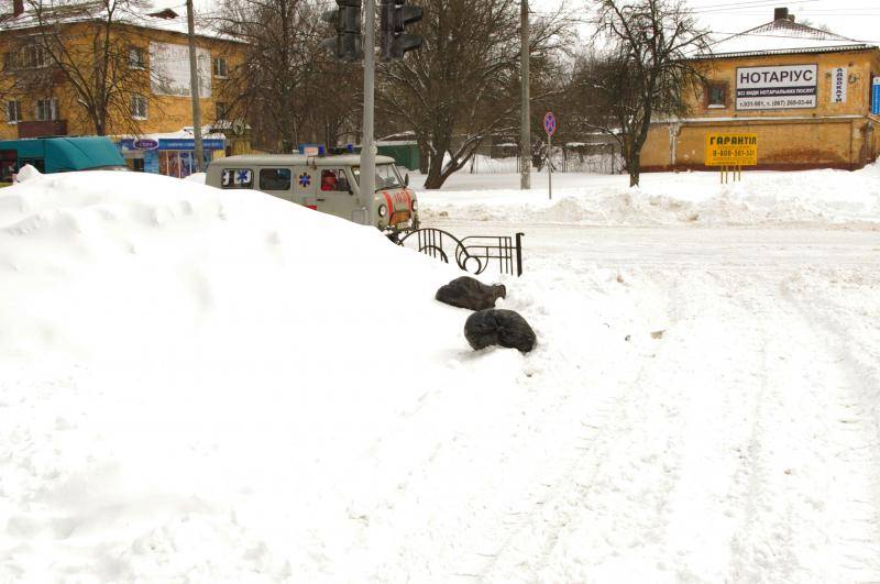 Хтось визволяє зі снігової пастки авто незнайомця, а хтось годує безпритульних собак. Дехто ж, ризикуючи власними життям, чистить дах магазину з надією підзаробити цього незвичного дня.