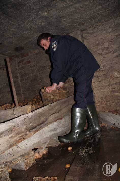 Помічники у погонах встигли якраз вчасно. Вода в погребі почали тільки-но прибувати. Удвох міліціонери упродовж кількох годин підняли нагору запаси старенької та розмістили їх в сухому місці.