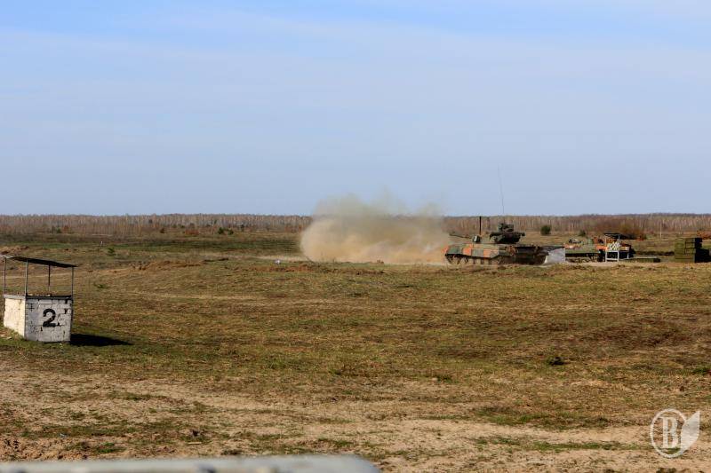 З танкової гармати бійці повинні були влучити у мішень-танк, що рухається під кутом 25 градусів зі швидкістю