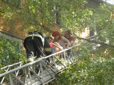Терміново було залучено ще одне відділення на автомобілі аеродромному, який за допомогою потужного лафетного ствола гасив вогонь. Тим часом по автодрабині вогнеборці проводили рятування мешканців будинку. В ході цього врятовано 9 осіб, серед яких 4 дітей.