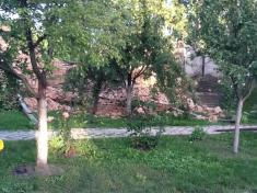 Аж ось, після початку робіт обрушився цегляний сарай на сусідню ділянку, де грали діти, діти дивом залишилися живі.