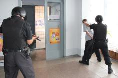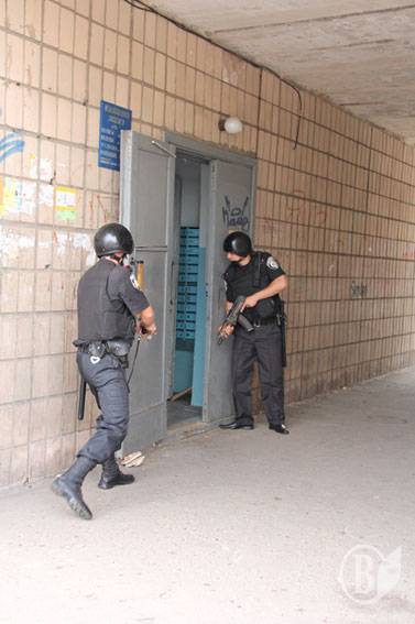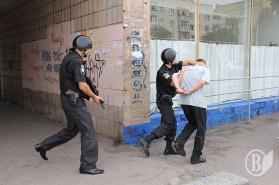 Група затримання прибула за 3 хвилини. Коли працівники міліції підійшли до дверей магазину, то виявили, що їх хтось тримає зсередини. Вочевидь зловмисник відчайдушно намагався до останнього уникнути затримання. Застосувавши силу, правоохоронці увійшли до приміщення де серед торгової зали стояв з ножем у руці зловмисник. Застосувавши прийоми рукопашного бою, міліціонери затримали невідомого та надягли на нього кайданки. У затриманого з кишені було вилучено гроші в сумі близько 15 тисяч гривень та кухонний ніж.