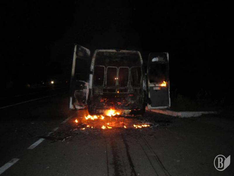 Мікроавтобус "Мерседес" згорів біля кордону без жертв