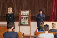 Міліціонер розповіла про небезпеку, яку містить в собі вибухівка, про правові аспекти поводження зі зброєю і боєприпасами, адже не секрет, що іноді громадяни залишають собі «на пам'ять» знайдені в лісі рештки зброї чи набоїв.