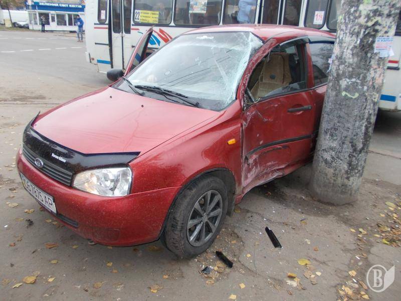 Авария на остановке - легковик врезался в столб и чудом не зацепил людей