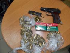 В ході проведення роботи з невідомим, а саме огляду його речей, в сумці було виявлено мисливську зброю АКМС–МФ з двома спорядженими магазинами та запасними набоями, всього 100 мисливських набоїв, та пристрій для відстрілу гумових куль ПМР з двома спорядженими магазинами та запасними набоями всього 256 набоїв.