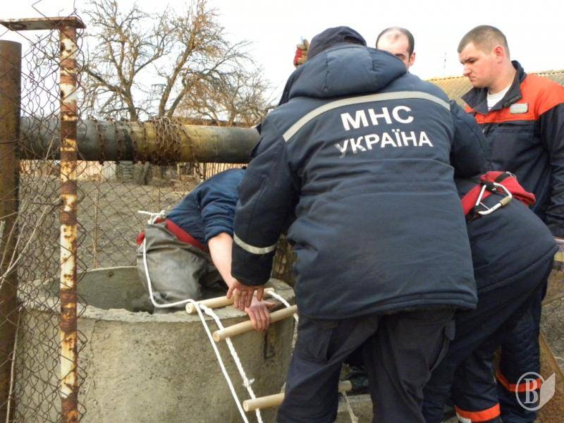 Спасатели с помощью спасательной веревки спустились в колодец и вытянули тело погибшего.