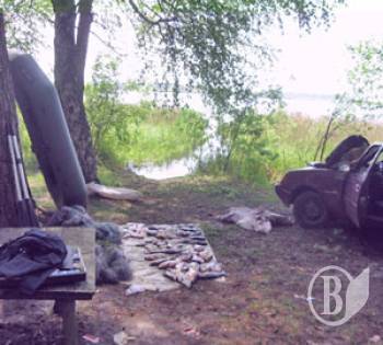 Ці браконьєри за допомогою гумового човна натягали чималу кількість риби цінних порід, а саме: лящ - 21, плоскирка - 48, карась - 27, щука - 2, лин - 20, окунь - 39, вязь - 2, плітка - 2 штуки. Збитки, завдані рибному господарству, склали близько шести тисяч гривень.